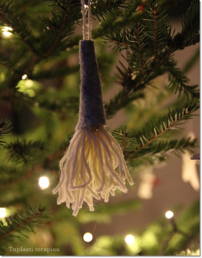 Todella kauniit koristeet ja ihanasti itse tehtyjä! Meillä on vuosi vuodelta siirrytty pienempään kuuseen ja nyt on tarkoitus vain laittaa havun oksia maljakkoon. Kuten sanoit, jokainen tekee omannäköisensä joulun ja niin on hyvä.