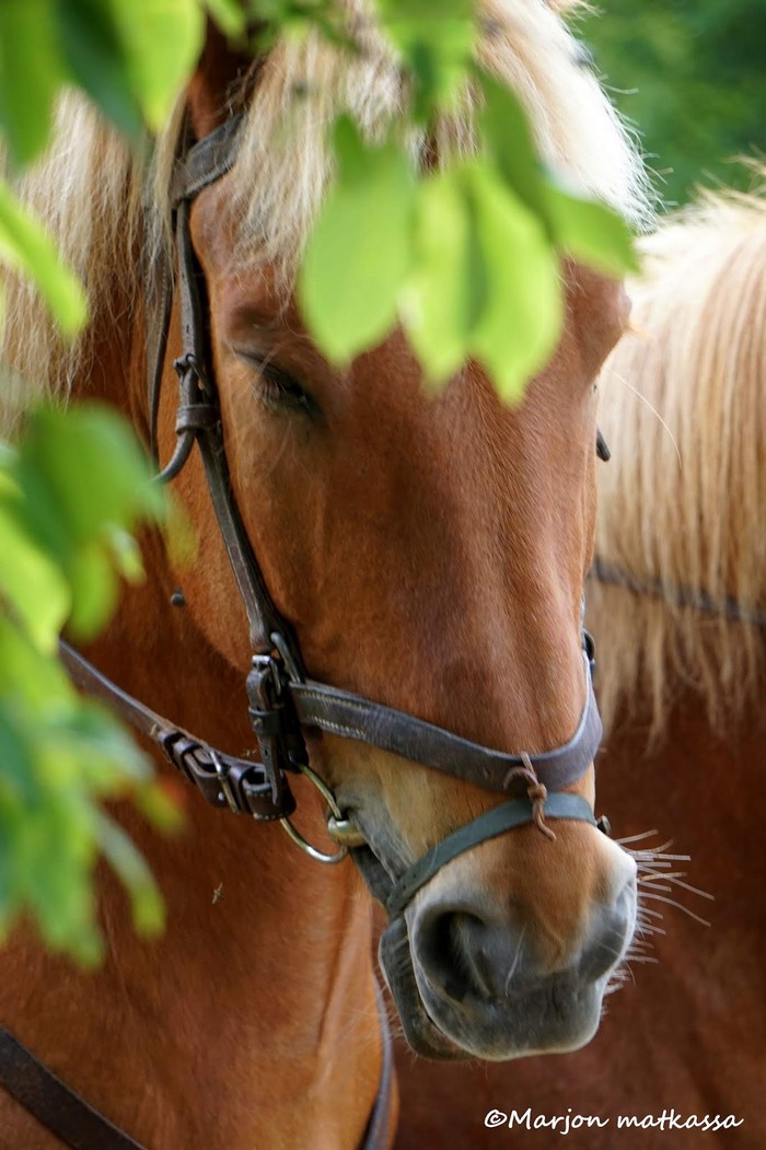 "Toinen kesäkuvani on suomenhevonen Tammelan Hakkapeliittatapahtumasta myös elokuulta. Olin tapahtumassa ensimmäistä kertaa ja kaikki oli uutta sekä jännittävää. Hevosia oli näkynyt laitumella mutta ennen itse näytöksen alkua ne kerääntyivät satuloituna maneesin toiseen päähän. Menin niin lähelle kuin oli luvallista ja onneksi pitkällä putkella sain tallennettua tämän herkkyyden.